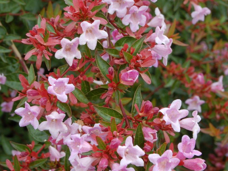 Абелия Edward Goucher – декоративный кустарник с мелкими живописными цветками розового и сиреневого оттенков, для которых характерны красные прицветники. Трубчатовидные цветы появляются на кончиках стебля и верхних частях листьев. Они источают в течение всего периода цветения, растянутого при благоприятных условиях на целый год, прекрасный аромат сирени.