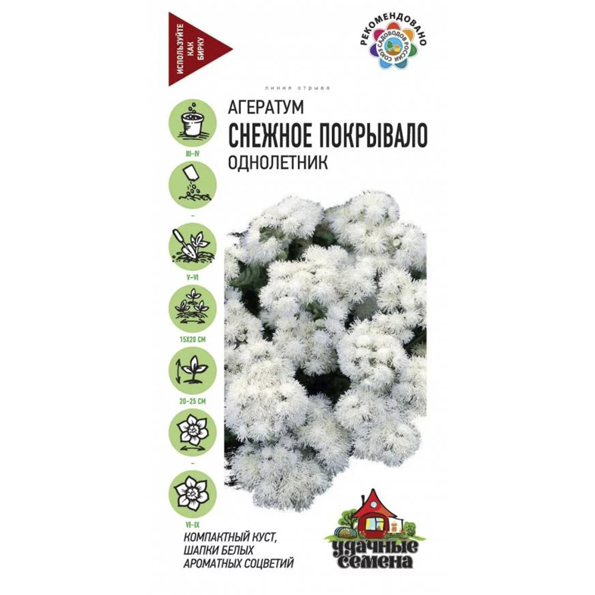 - Полное название растения Агератум Снежное покрывало