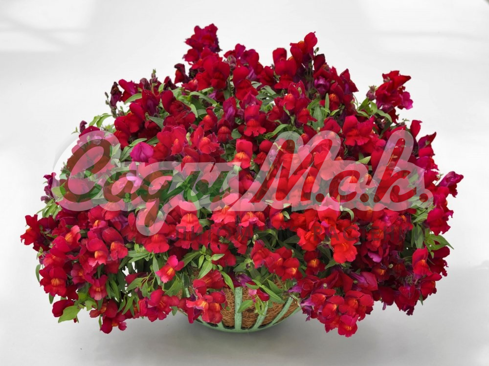 Великолепный крупноцветковый срезочный сорт. Декоративное растение из семейства Норичниковые, культивируемое как однолетник, высотой 70-90 см. Цветет с конца июня до поздних заморозков. Цветки собраны в кистевидные соцветия густо-красной окраски. Холодостоек, светолюбив, к почвам нетребователен, в засушливый период нуждается в поливе. Выращивают рассадным способом или прямым посевом в грунт осенью. При весеннем посеве семена необходимо стратифицировать при температуре +10°С. Посев проводят с начала марта до середины апреля, поверхностно, не заделывая, в ящики с субстратом и ставят на свет. Всходы появляются через 8-12 дней. Рассаду высаживают во второй половине мая с расстоянием между растениями 35-40 см. Используется для групповых посадок и цветников, а также для получения высококачественной срезки (львиный зев стоит в воде до двух недель).