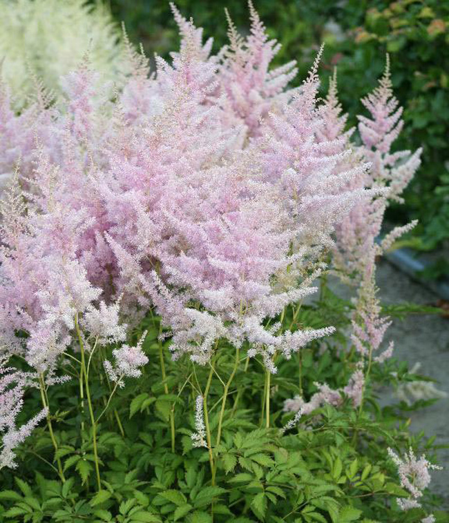 Саженцы астильбы Hуаzinth понравятся ценителям изящных растений, ведь, когда распускаются бледно-фиолетовые соцветия этого декоративного куста, ими просто невозможно не умиляться. Зеленовато-бурые листья очень удачно подчеркивают мягкие тона цветков. Ажурные декоративные листья создают привлекательный вид растения в периоды до и после цветения. Стоит отметить, что саженцы этого сорта будет радовать вас своим приятным ароматом и красивым видом соцветий довольно долго: период обильного цветения длится около месяца в середине лета.