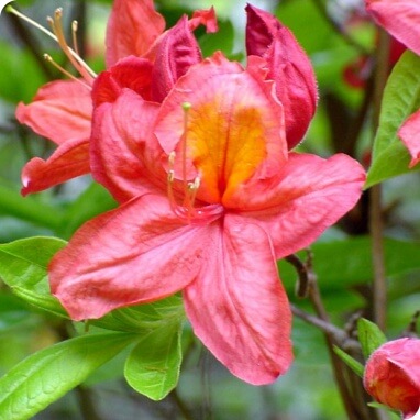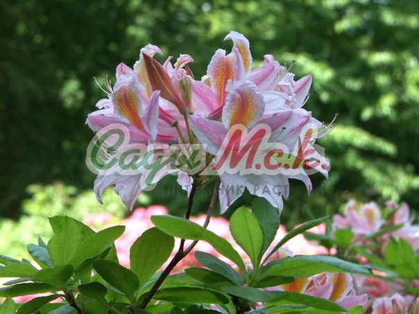 Азалия Cecile - медленнорастущий кустарник с прямой, широкой, раскидистой кроной. К 10-ти годам достигает 110 см высоты и 100 см в ширине. Молодые листья - красновато-коричневые. Цветки крупные, лососево-розового цвета с золотистыми пятнышками, душистые. Лепестки слегка гофрированные. Период цветения конец мая - середина июня.
