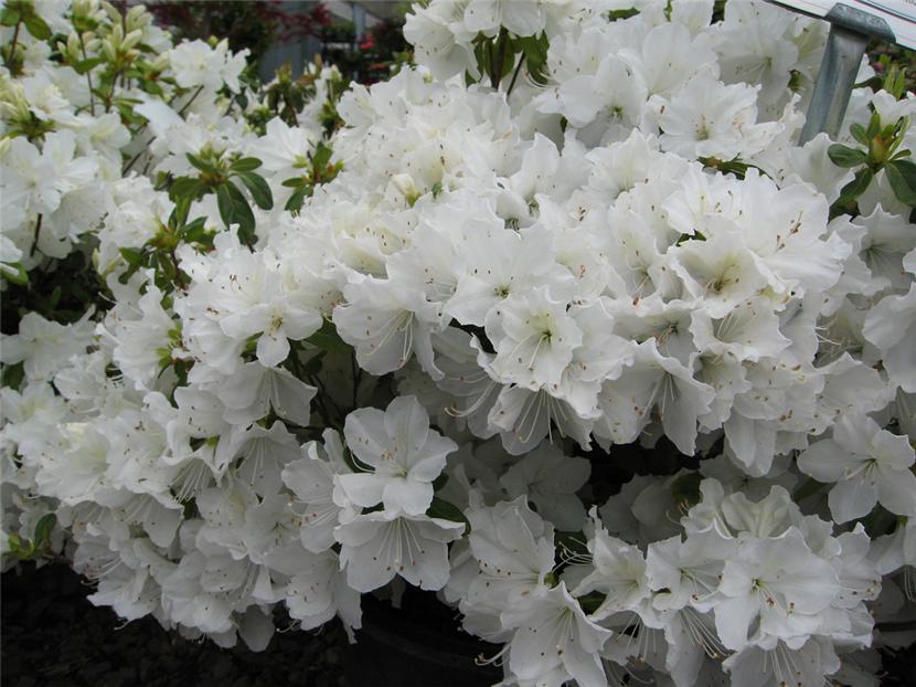 Азалия(рододендрон листопадный) Oxydol - прямостоячий листопадный кустарник с густой кроной. Молодые листья коричневато-красные, несколько бронзовеют к осени. Цветок 7см диаметром, белый с редкими желто-оранжевыми пятнами. Круглые соцветия состоят из 6-10 цветков. Предпочитает солнце или легкую полутень, кислые (рН от 4,5 до 6,5), хорошо дренированные, влажные почвы. Требует укрытия на зиму. Высота 1,4-1,8 м. Период цветения май - июнь.