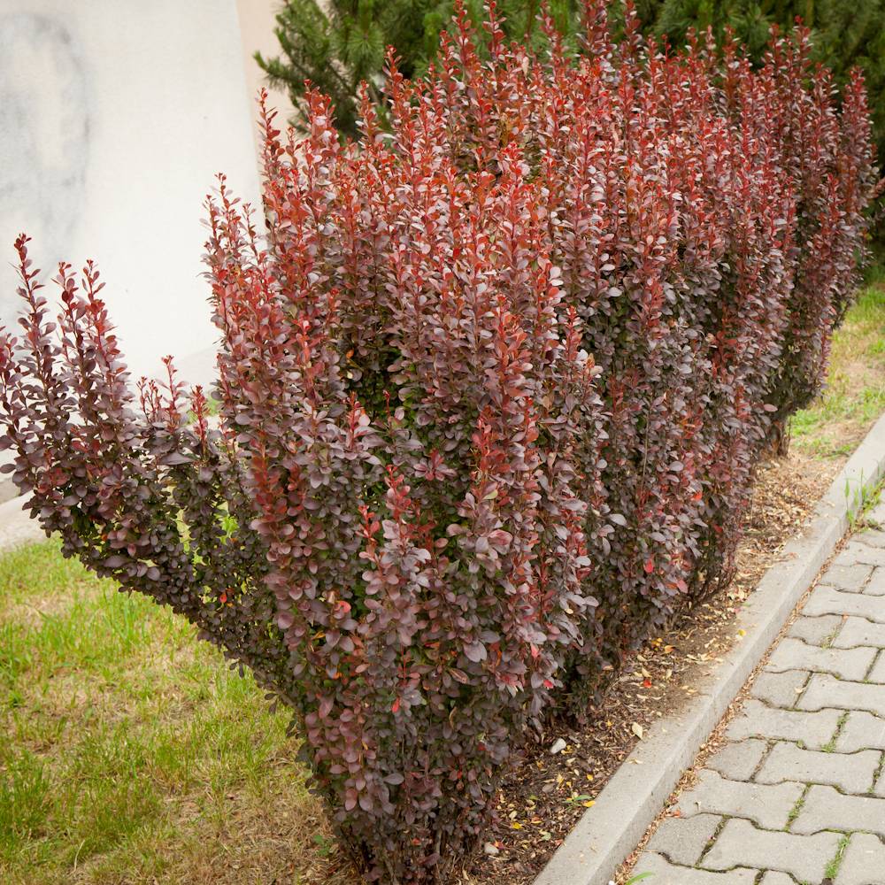 Саженцы барбариса Тунберга Red Pillar – яркие и эффектные кусочки лета. Кустарник этого сорта достигает полтора метра в высоту и один метр в ширину. Листочки у него мелкие красно-фиолетового цвета вверху и тёмно-зелёного внизу, а осенью куст преображается и становится почти полностью алым. Цветёт кустарник жёлтыми цветами. Крупномеры Red Pillar прекрасно адаптируются почти к любым условиям, хорошо растут в полутени или на солнечных участках. Куст хорошо стрижётся и переносит засуху, однако не стоит допускать замокания корня. Барбарис зимостоек и устойчив к большинству болезней.