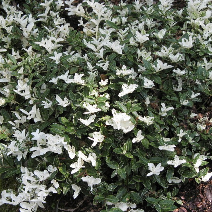 Саженцы бересклет Форчуна Harlequin - медленнорастущий, вечнозелёный, стелющийся кустарник. В высоту кусты бересклета Harlequin не превышают 30см. Его ветки имеют обыкновение укореняться, соприкасаясь с почвой. Плотным листьям эллиптической формы и крапчатого окраса растение обязано своим названием. К осени листья приобретают розовый, иногда даже малиновый, оттенок. Крупномер Harlequin предпочитает полутенистые места, хотя будет расти и в тени. Хорошо чувствует себя даже на неплодородных почвах. Молодые кустики на зиму лучше укрывать. В саду отлично смотрится и как ковровое растение, и в виде вьющегося по деревьям или стенам куста.