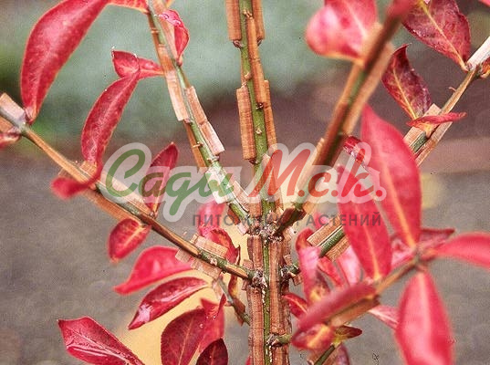 Отличается густой, компактной, широко-округлой кроной, ребристыми пробковыми наростами на ветвях и карминно-красной осенней окраской листьев.