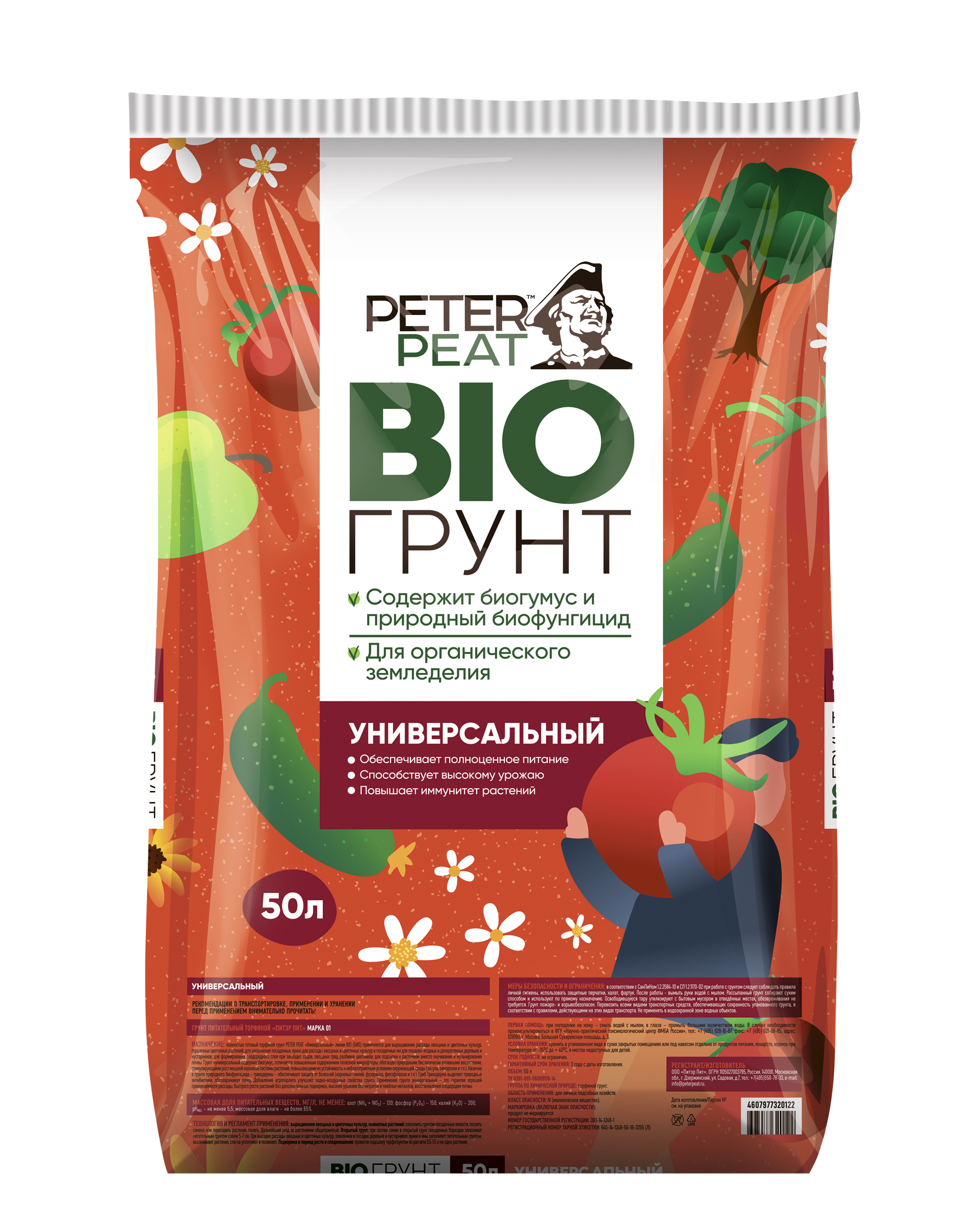 БИО Грунт Универсальный 50 л содержит биогумус, отличается повышенным содержанием полезной микрофлоры, обогащён природными биологически активными веществами, стимулирующими рост мощной корневой системы растений, повышающими их устойчивость к неблагоприятным условиям окружающей среды (засуха, заморозки и т.п.). Наличие в грунте природного биофунгицида – триходермы – обеспечивает защиту от болезней (корневых гнилей, фузариоза, фитофтороза и т.п.). Гриб Триходерма выделяет природные антибиотики, обеззараживая почву. Добавление агроперлита улучшает водно-воздушные свойства грунта. Применение грунта «Универсальный» линии BIO (БИО) – это гарантия хорошей приживаемости рассады, быстрого роста растений без дополнительных подкормок, высоких урожаев без нитратов и тяжёлых металлов, восстановления плодородия почвы.