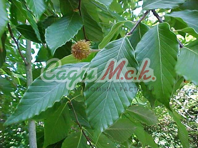 Бук восточный имеет густую, широкую, округлую либо яйцевидно-округлую крону. Кора гладкая, серо-палевая, со временем становится бороздчатой. Побеги имеют коричневый цвет, шелковистые, постепенно оголяются. Длина листьев – до 17 сантиметров, форма – короткозаостренная либо заостренная, эллиптическая, клиновиднояйцевидная или обратнояйцевидная, верхушка – остроконечная, оттянутая, основание – округлое, или клиновидное. Края – широко либо неравномерно городчато-волнистые. Верхняя часть листьев – блестящая, гладкая, нижняя – тонкокожистая, опушенная. Черешки опушенные, плотные, до 1,2 сантиметра в длину. Плюски деревянистые, обратнояйцевидные, до 2 сантиментов в длину, покрыты колючими щетинками. Плодоножка – плотная, длиной до 3 сантиметров. Плоды имеют форму орешков, коричневые, блестящие, до 2,2 сантиметров длиной. Время цветения – апрель – май, устойчивость к морозам до -29 оС.