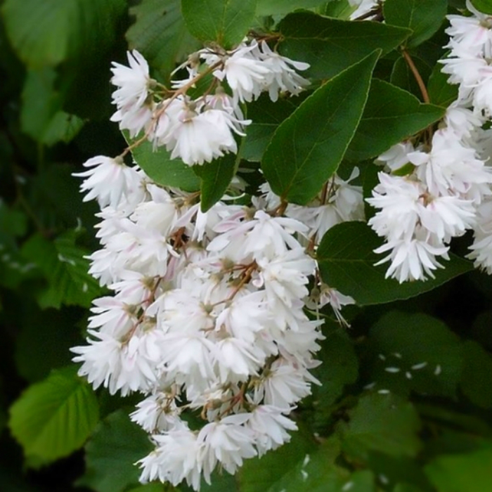 Саженцы Дейция Deutzia Candidissima высаживают весной, перед посадкой желательно несколько дней подержать их в t от 0 до +3°С. Растет ежегодно по 20-30 см в ширину и высоту. Максимальная высота куста до 3 м, крона густая и растет до 2 м в диаметре. Апрель-сентябрь – период вегетации.Овально-заостренные темно-зеленые листья растут в длину до 3-8 см. Цветочки же белоснежные, собраны в кистевидные соцветия, длинна которых до 12 см, обильно цветут в июне-июле.Саженец крупномера Candidissima не капризен, легко адаптируется, растет в любой почве, морозостоек. Чувствителен к засухе и жаре, нуждается в периодическом обрезании.