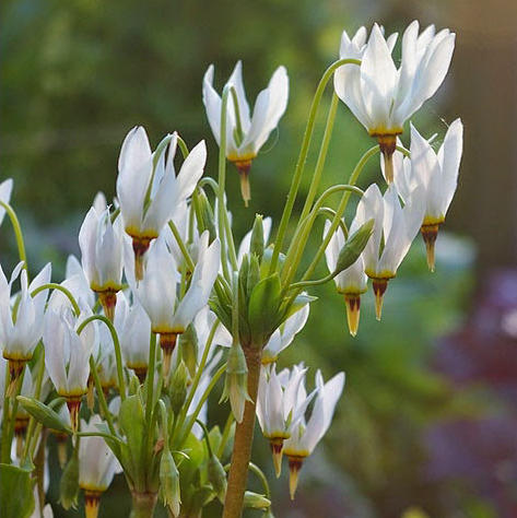 Второе название растения – метеор! Именно на него похожи нежные цветки 3 см в диаметре с сильно отогнутыми назад пятью лепестками. Над зелёными листьями, собранными в плотные пучки, в начале лета появляются высокие (до 50 см) изогнутые цветоносы с зонтиковидными соцветиями. Неприхотливый и долгоцветущий корневищный многолетник хорошо сочетается с астильбами, папоротниками и миниатюрными хвойниками