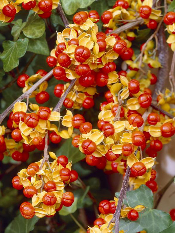 Древогубец Diana - многолетняя вьющаяся лиана, высотой до 12м, используется для маскировки старых деревьев и изгородей. Листья зеленые, цветки мелкие, белые. К осени на растении вызревают желто-красные плоды, которые в дальшейшем можно использовать в различных аранжировках. Сорт женский, морозостойкий и нетребовательный.