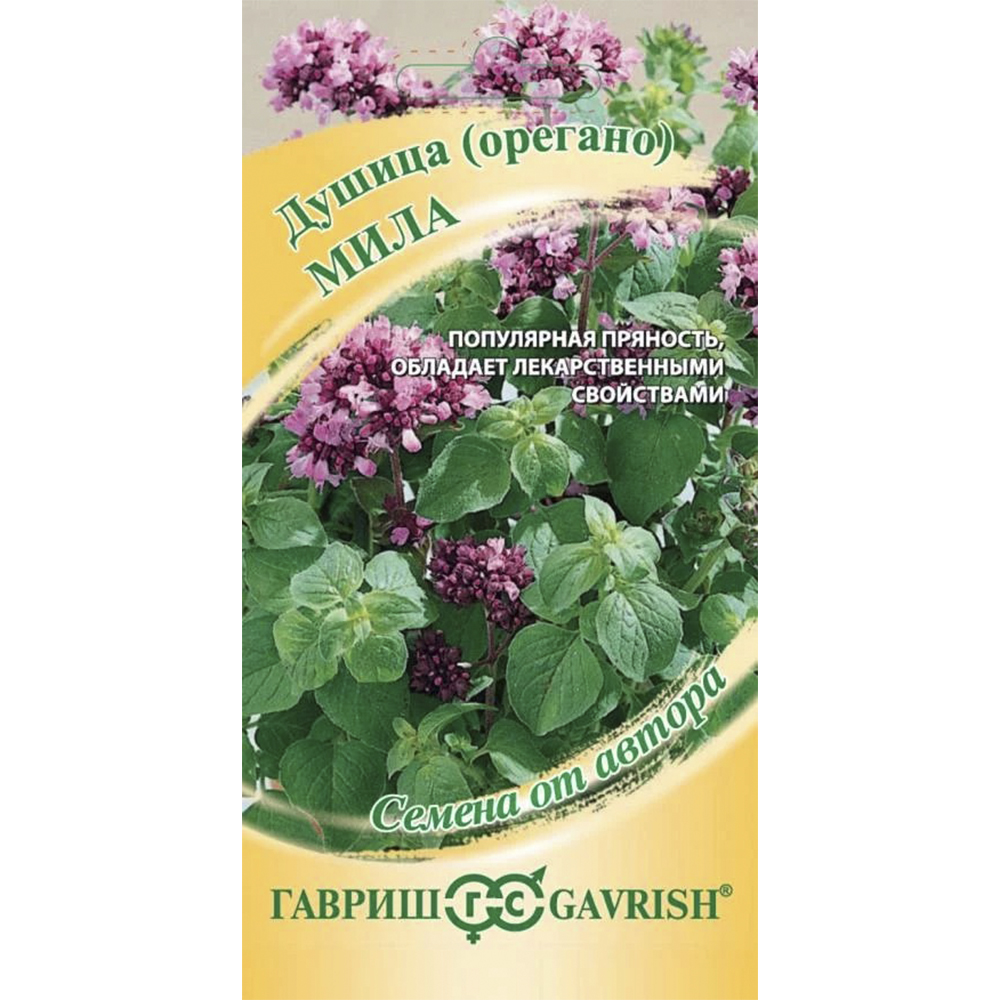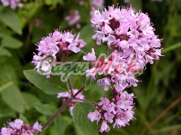 Многолетнее растение с сильным приятным ароматом и пряным, слегка горьковатым вкусом из семейства Губоцветные. Растение высотой до 50 см, с матово-зелеными яйцевидными листьями, покрыто мягкими щетинистыми волосками. Мелкие светло-пурпурные цветки, собраны в щитковидные соцветия. Цветет с июля по сентябрь. В кулинарии используются листья и молодые побеги в свежем и сушеном виде в качестве приправы к овощным и мясным блюдам, для консервирования и приготовления чайных напитков. Душица (орегано) обладает лекарственными свойствами, ее настой применяют как отхаркивающее средство при заболеваниях органов дыхания, для возбуждения аппетита и улучшения пищеварения, лечения гинекологических заболеваний. Посев на рассаду производят в марте. Рассаду высаживают в открытый грунт в мае - июне, оставляя между растениями 20-30 см, между рядами - 50-60 см. Посев семян в открытый грунт производят в мае - июне.