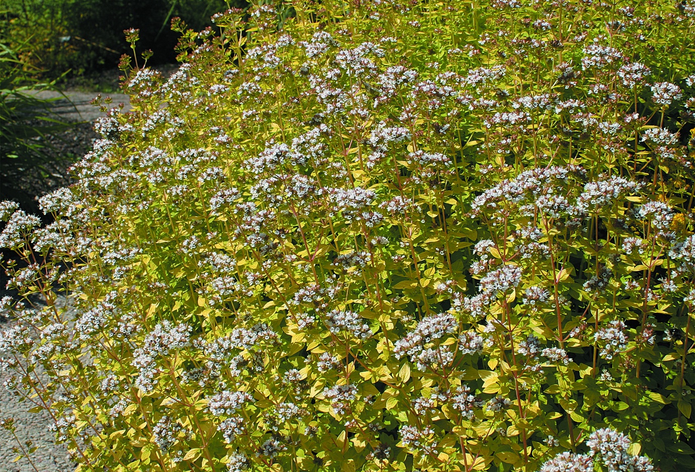 Ароматное, неприхотливое растение, радующее длительным цветением. Растение образует компактные кустики. Достигает в высоту 30—40 см и 50 см в ширину. Листочкие, мелкие, овальные, желто-зеленого оттенка. Цветки маленькие, бело-розовые, собраны в щитковидные соцветия. Цветет обильно, длительно, с июля по сентябрь. Растение отлично подходит для контейнеров, альпинариев, а также широко применяется в кулинарии и фитотерапии.