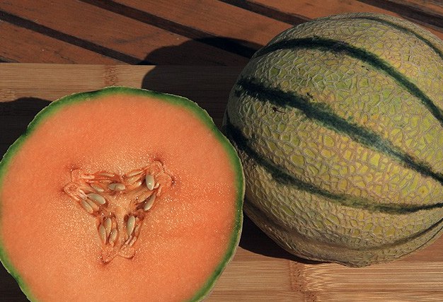 Дыня Cantaloup Charentais отличается плодами округлой формы. Кожура толстая, состоит из темно-зеленых гладких полос и сетчатых светлых зелено-желтых сегментов. Мякоть оранжево-лососевая, твердая, восхитительного, сладкого, мускусного вкуса. Внутренняя структура гладкая, нежная.