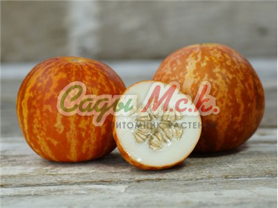 Среднеспелый (77-95 дней от всходов до плодоношения) сорт. Растение среднего размера, длинноплетистое. Предназначен для выращивания в пленочных теплицах. Посев на рассаду в конце апреля. Высадка рассады в конце мая – начале июня в возрасте 30-35 дней. В южных регионах выращивают в открытом грунте прямым посевом в апреле-мае. Схема посадки 70х150 см. Растения подвязывают к шпалере, до высоты 50 см удаляют все боковые побеги, последующие прищипывают над 1-3 листом. Полив умеренный, особенно в период плодоношения. На растении образуется 2-3 плода. Плод шаровидный и некрупный, массой 0.7-1.3 кг. Поверхность плода гладкая, желто-оранжевого цвета, без рисунка. Кора средней толщины, гибкая, твердая. Мякоть белая, тонкая, волокнистая, плотная, полухрустящая, сочная, сладкая. Семенное среднего размера. Относительно устойчив к бактериозу, в сильной степени поражается мучнистой росой и антракнозом. Ценность сорта: хорошая транспортабельность плодов. Урожайность одного растения 1,4-3,9 кг.