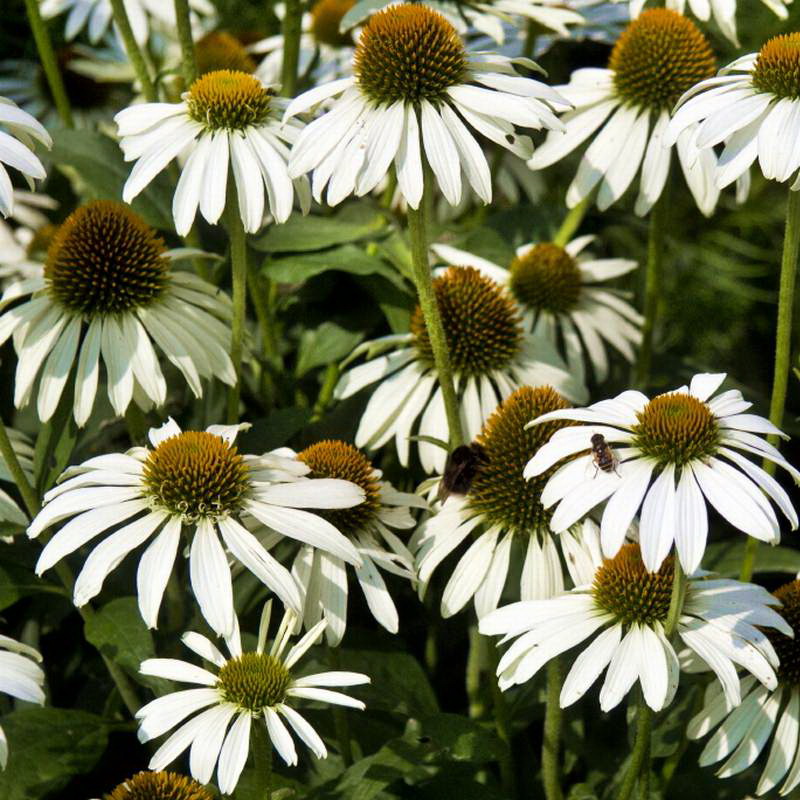 Эхинацея пурпурная Аляска: Компактный выносливый многолетник. Цветки белые с зелёной серединкой. Цветение в июле-сентябре. Высота 60-70 см. Место солнечное. Почва дренированная. Зона 4 (до -29ºС).