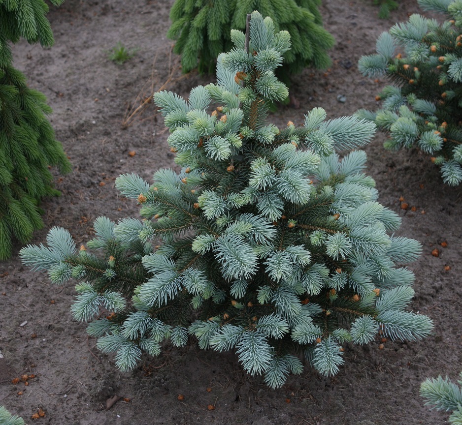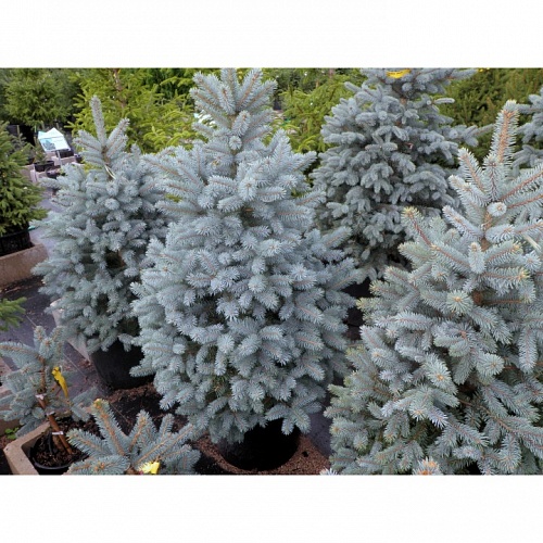 Ель колючая Baby Blue Eyes - небольшое красивое дерево высотой до 4-5 метров, диаметром кроны до 2,5-3 метров. Крона плотная, симметрично развитая, пирамидальная, низко расположенная. Хвоя серебристо-голубая, густая, колючая, короткая. Почки крупные, декоративные, весной распускаются позже остальных культиваров. Растет этот сорт очень медленно.