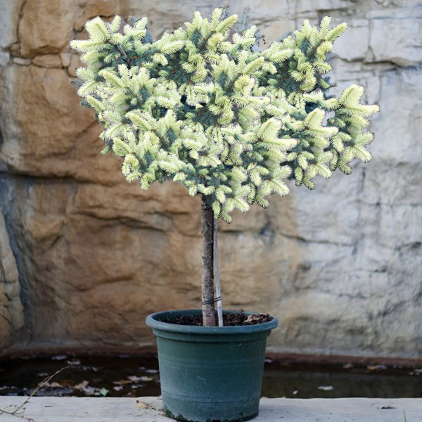 Медленнорастущая, нерегулярной формы (в среднем на 10-15 см в год). Морозостойкий сорт ели. Крона достаточно плотная, ассиметричная, особенно в первые годы жизни. Хвоя колючая, серебристо-голубая. Ранней весной на молодых приростах – мягкие хвоинки кремово-желтого цвета. Не требовательна к уходу. Саженцы ели Белобок, в основном, используются для одиночных посадок.