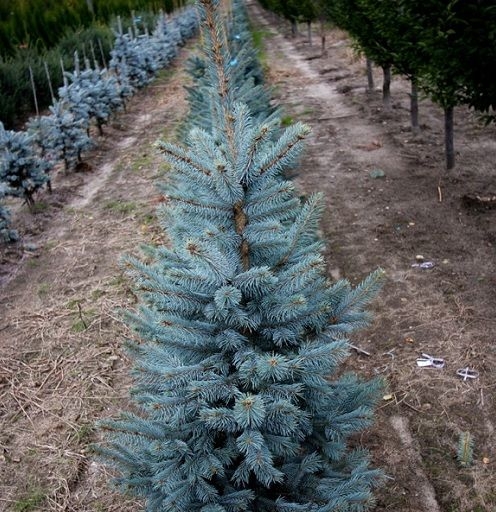 Ель колючая Schovenhorst - небольшое дерево с красивой, очень плотной, компактной, нерегулярной формой кроны. Обладает высокой популярностью среди садоводов. В 10 лет достигает высоты всего 1,5-2,5 метра. В начале быстрее растет вверх, позже начинает разрастаться в стороны. Окончательная высота до 10-15 м, ширина 5-6 м. Хвоя длинная, жесткая, колючая, серо-голубая, сохраняет цвет на протяжение всего года. Эта ель эффектно выглядит в любом саду.