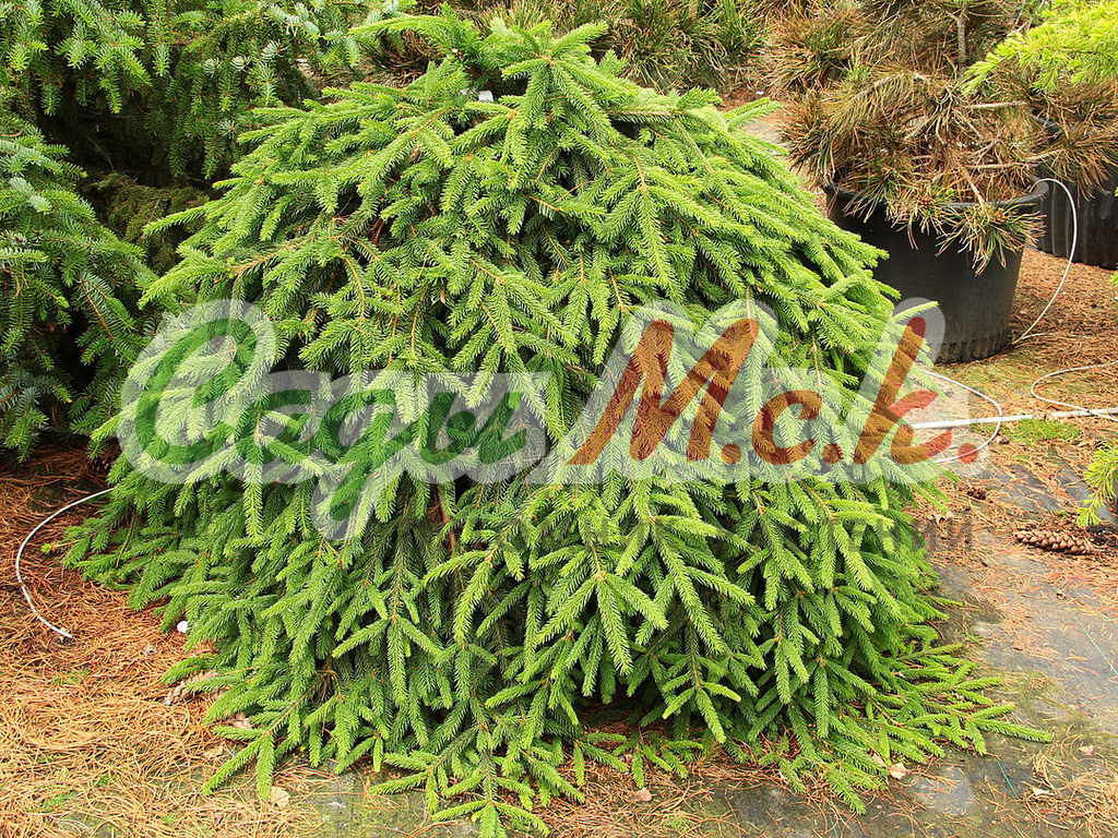Ель обыкновенная Maxwellii - карликовый компактный вечнозелёный кустарник с кроной в виде нерегулярного широкого конуса. Ценная форма, теневынослива, морозостойка, хорошо переносит городские условия. Взрослое растение может достигать 1 м в высоту и до 2 м в ширину. Эта ель медленнорастущая. Годовой прирост составляет около 5-10 см. К 10 годам может дорастать до 0,5-0,7 м в высоту и гораздо шире в ширину. Хвоя игольчатая, радиально и очень густо расположенная, короткая, тонкая, жёсткая, торчащая, желтовато-зелёного цвета. Побеги многочисленные, прочные, торчащие.
