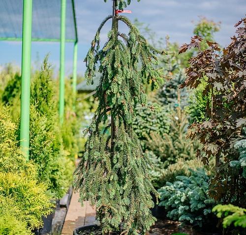 В высоту деревце достигает 8 м, крона узкая, развивается неравномерно, обычно ее диаметр не превышает 3 м. Ежегодно ель увеличивается на 10 см в высоту и 5 см в ширину. Главная особенность крупномера обыкновенная Inversa – ниспадающие, обвисшие ветки и заваливающаяся верхушка. Хвоя блестящая, толстая, темно-зеленого оттенка. Саженцы хорошо переносят сильные морозы, не терпят засухи, но и к переувлажнению относятся негативно. Ель светолюбива, но приживается и в полутени.