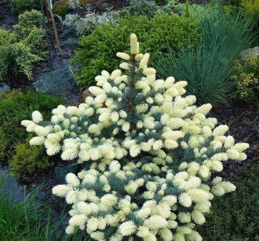 Медленнорастущее, декоративное деревце дает в год прирост около 15 см. Тем не менее, к 10 годам достигает 2 м в высоту, диаметр кроны – около 1 м. Крупномер колючий Bialobok особенно привлекателен весной, когда отрастают молодые побеги, покрытые лимонными, светло-салатовыми иголками, контрастирующими с темно-зеленой старой хвоей. Крона плотная, неправильной формы. Саженец предпочитает открытые, солнечные участки или полутень. Деревце используется в одиночных посадках.