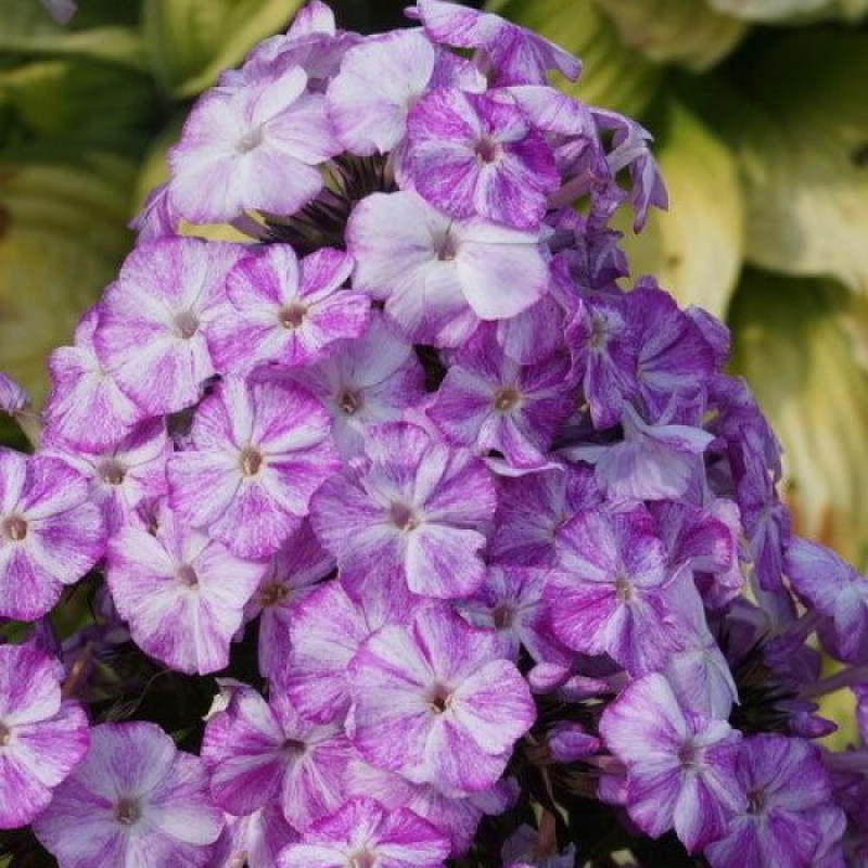 Флокс метельчатый Фрекл Блю Шейдес (Phlox paniculata) из новой серии Флоксов, который успешно помогает в оформлении зеленых массивов, разноцветных миксбордеров, опушек, зон отдыха и водоемов. Приятным ароматом и яркой окраской невысоких кустов с круглыми крупными цветами представленный сорт начинает пестреть уже с начала июля. На крепком раскидистом кусту высотой 40-50 см располагается плотное фиолетово-сиреневое соцветие, которое проявляет свою насыщенность в процессе распускания - белоснежные тона с интенсивными лавандовыми штрихами со временем приобретают сине-фиолетовый оттенок.