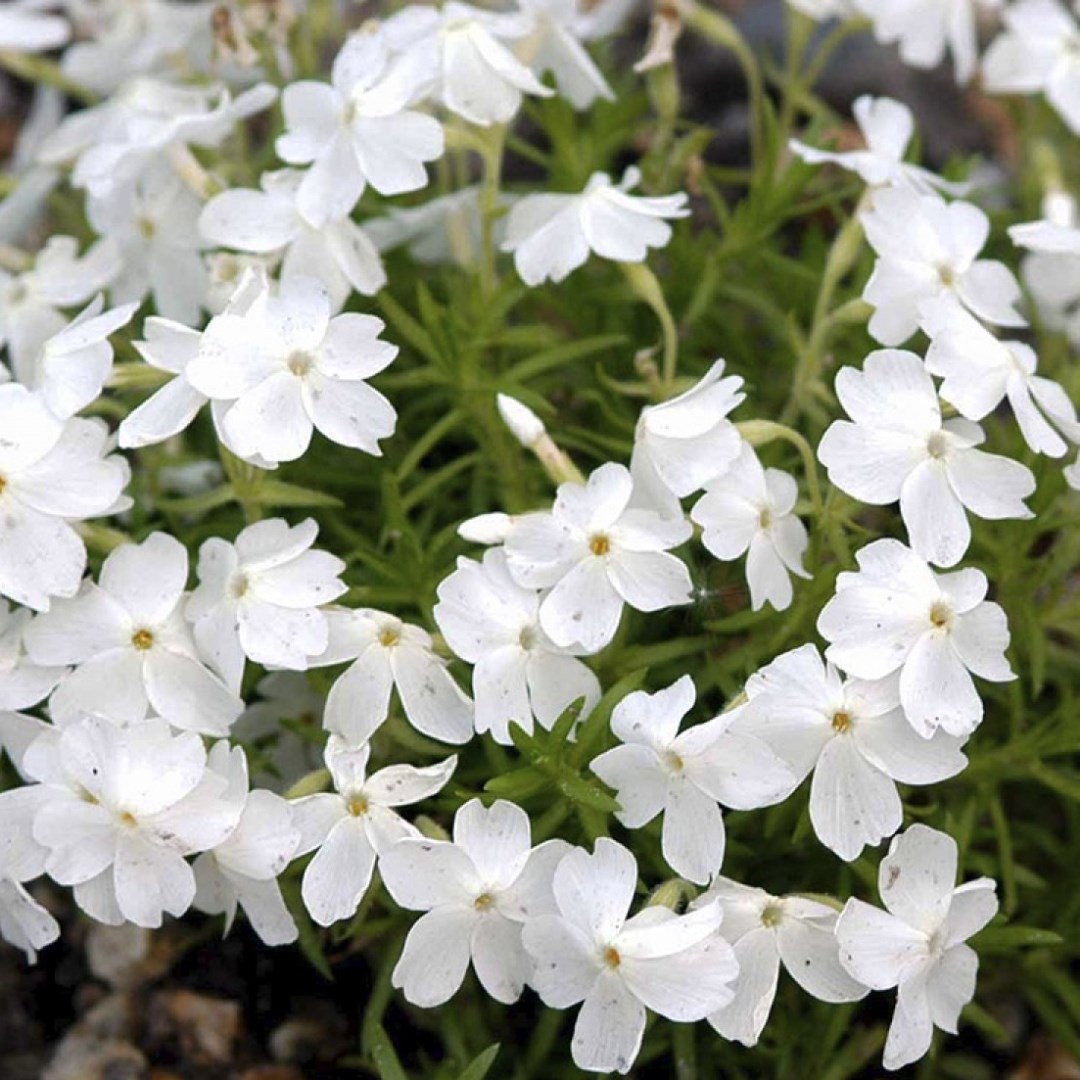 Флокс шиловидный Майшнее (Phlox subulata Maischnee) – многолетний быстрорастущий сорт. Зелени на подушковидных кустах практически не видно из-за обильного цветения. Используют для образования вечнозеленого ковра. Одно растение разрастается до метра в диаметре, в высоту не превышает 15 сантиметров. Листочки зелено-серые, острые, до 5 сантиметров. Цветет первый раз в конце лета, повторно – в начале осени. Небольшие цветочки колосовидной формы, диметром до 1,5 сантиметров чистого белого цвета. Цветение очень плотное. Флокс шиловидный Майшнее хорошо переносит засуху, но не любит застоя воды. Хорошо развивается на сухих бедных почвах.