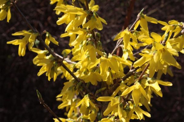 Денсифлора на штамбе (Densiflora) — Бледно-желтые цветы достигают диаметра 3 см, плотно покрывают побеги. Ветви слегка болтаются. Цветочные лепестки отклоняются в обратном направлении. Во время цветения ветви полностью живописно покрыты цветами.