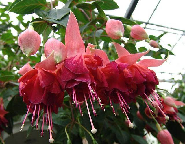 Фуксия Bicentennial - ампельная. Чашелистики нежно-оранжевые. Лепестки лососево-оранжевые, с мазками фуксиевого цвета. Цветы махровые, крупные. Красивый контрастный сорт.