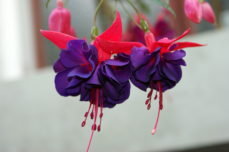 Maori Maid крупноцветковая фуксия, которая идеально подходит для выращивания в подвесных корзинках.