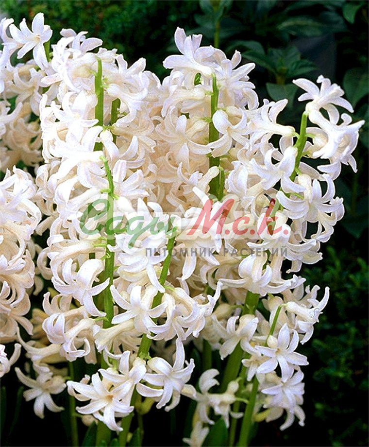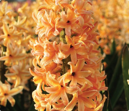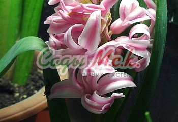 Гиацинт Файрлайт Hyacinthus Firelight относится к виду восточных, из группы крупноцветковых. Окрас цветка лососевый с кремовой каймой, аромат сильный. Высота растения 25 см. Соцветие гиацинтов звездочки с круто свернутыми лепестками на фоне отогнутых зеленых листьев, в диаметре 3 см.