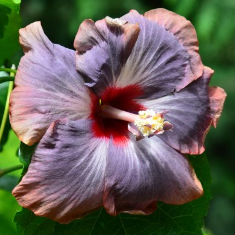 Гибискус Dark of Night - необычно окрашенный цветок. Лепестки серовато-фиолетовые и бордовые (в зависимости от условий содержания), у основания ярко-красные.
