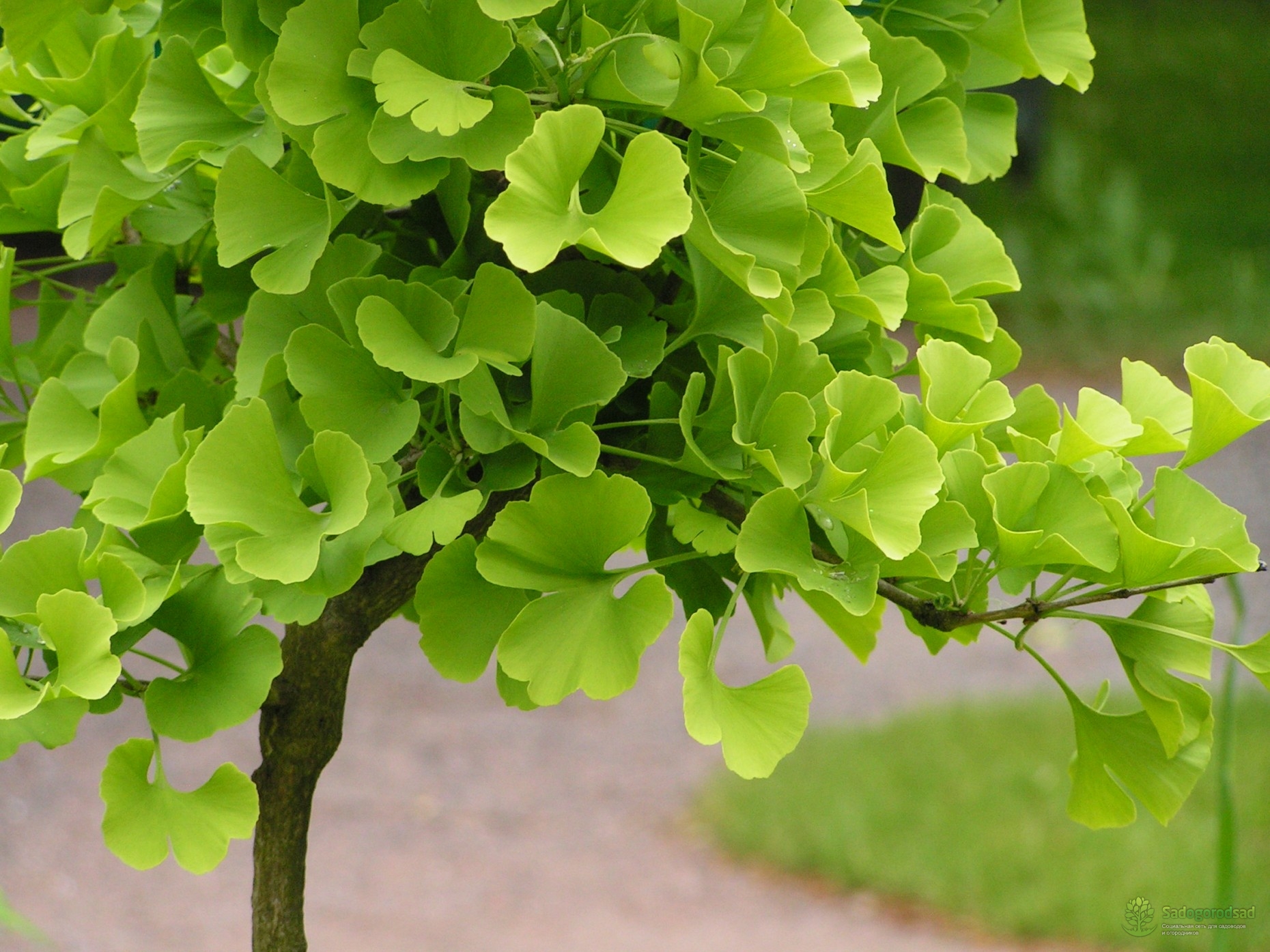 Гинкго – высокое, до 40 м, дерево. В молодости его крона имеет пирамидальную форму, а затем разрастается. Его листья напоминают утиные лапки, за что получили соответствующее название в китайском и японском языке. Корневая система хорошо развита, потому растение не боится ни сильных ветров, ни обильных снегопадов.