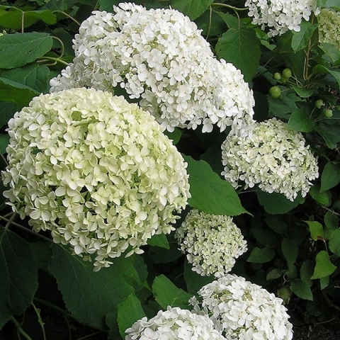 Саженцы гортензии древовидной Bounty прекрасно подходят для высаживания бордюром, на расстоянии не менее 50 см друг от друга. Кусты невысокие, до 1 метра, достаточно пышные. Начиная с июня, куст начинает обильно цвести вплоть до конца сентября. Шапковидное соцветия от зеленоватого до кремово-белого цвета, очень большие, могут достигать в диаметре 30 см. Растение любит светлые места, однако, продолжительное воздействие солнца, может принести вред гортензии Bounty. Укрывать на зиму взрослые саженцы не нужно, даже замёрзнув, растение весной обильно пустит побеги. При обильном поливе, цветение будет пышным.