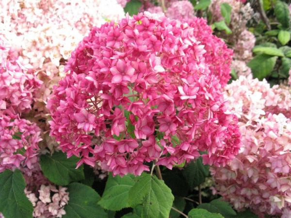 Гортензия древовидная Bella Anna цветет шаровидными соцветиями до 35 см в диаметре темно-розового, почти малинового оттенка. Высота куста достигает 1,3 метров. Побеги жесткие, прямостоячие, коричневые, молодые – зеленые. Листья зеленые, к осени становятся желтыми. Цветение длительное, обильное – с июня до осенних заморозков. В течение лета требует обрезки. Почвы должны быть хорошо дренированы, так как гортензия не выдерживает застоя воды. Зимостойкий сорт, чаще используется в групповых насаждениях.