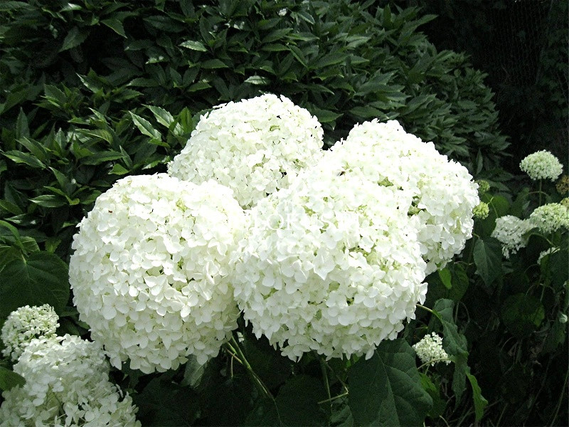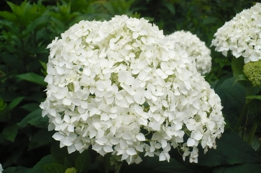 Гортензия древовидная Sheep Cloud - пышный, густой кустарник высотой около 1,5 м с округлой формой кроны. Листья насыщенно-зеленого цвета снаружи и голубовато-серебристые с обратной стороны. Соцветия крупные, диаметром 15-20 см, состоящие из стерильных цветков, меняют цвет от ослепительно-белого до нежно-зеленого. Цветение обильное с июля по сентябрь