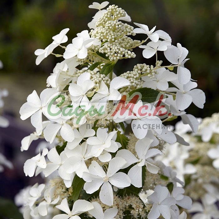 Гортензия метельчатая ‘Левана‘ обладает крупными коническими соцветиями, которые могут достигать длины 50 см, напоминают соцветия каштана. Цветки большие 5-7 см в диаметре, похожие на порхающих бабочек. Окраска соцветий меняется от белой к розовой. Цветение длительное с июля по октябрь. Куст сильнорослый до 2 м высотой с жесткими, прямостоячими побегами, не сгибающимися под тяжестью соцветий. Листва весной и летом зеленая, осенью становится от пурпурной до насыщенно оранжевой. Cорт устойчивый к заболеваниям, полностью морозостойкий. Светолюбива, выносит полутень. Саженцы гортензии предпочтительно высаживать в плодородные, рыхлые, влажные и кислые почвы. Не выносит извести в почве. Устойчива к загрязнению воздуха. Обязательны поливы в период роста побегов. Обрезают рано весной сухие соцветия до хорошо развитого узла, вырезают обмерзшие и слабые побеги. Если сокодвижение началось, обрезку следует проводить в начале распускания листочков