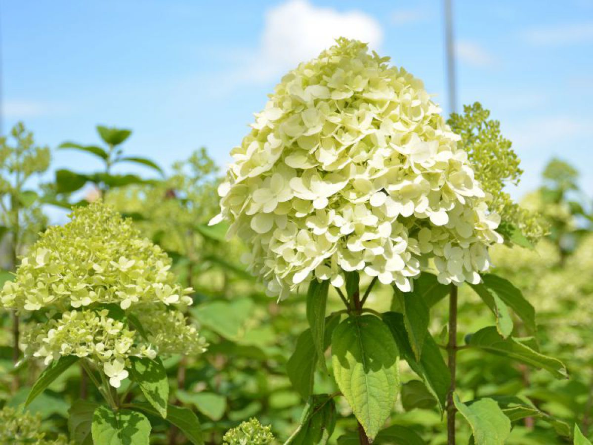 Гортензия метельчатая Little Lime – карликовый сорт гортензии, вырастающий лишь до 70 см в высоту. Крона также небольшая – до 1 метра в диаметре. Побеги жесткие, прямостоячие. Листва темно-зеленая, к осени становится красноватой. Соцветия метельчатые, широкопирамидальной формы, сначала бледно-зеленые, потом постепенно становятся кремовыми. Особенность сорта – высокая морозоустойчивость, не нуждается в укрытии. Почвы подходят любые, но наиболее обильно цветет в суглинистых, плодородных землях на солнечном месте. Не требует подвязки, подходит не только для сада, но и для контейнерной рассадки.