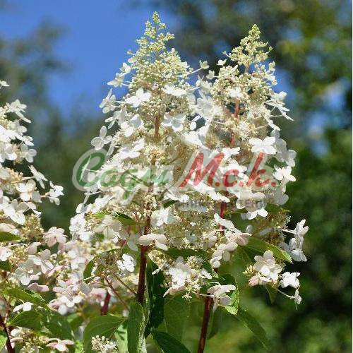 Высота до 2м. Растение с прямыми редковетвистыми побегами. Особенно эффектна в штамбовой форме. Листья супротивные, эллиптические или яйцевидные шершавые, матово-зеленые. Цветки собраны в крупные соцветия, длиной до 30см, которые прерываются в нескольких местах листьями, отчего метелка выглядит более крупной и воздушной. В начале цветения цветки кремово-белые, затем становятся темно-розовыми