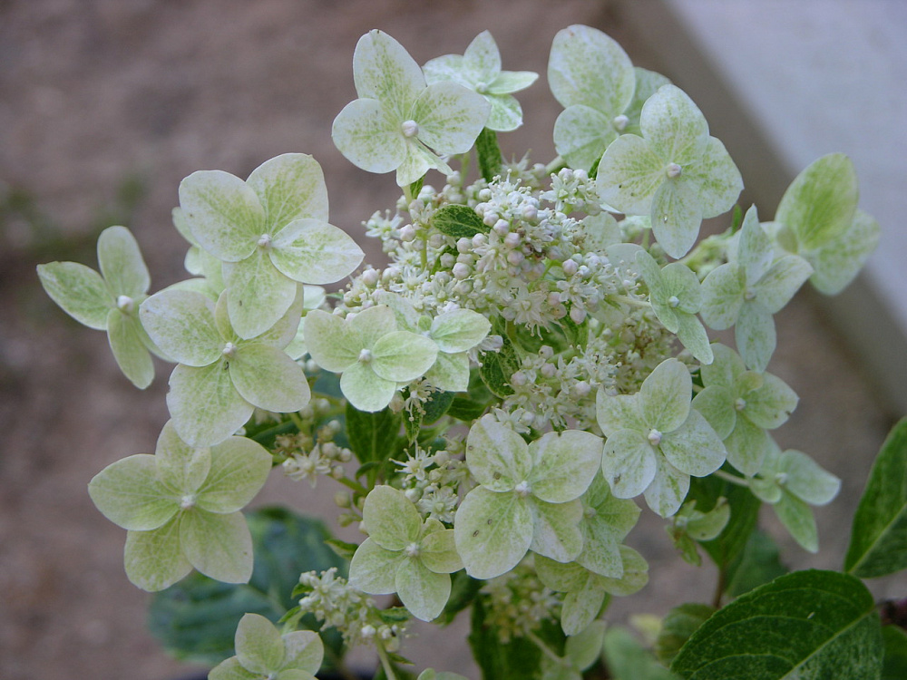 Сильный, жизнеустойчивый куст, с белыми метельчатыми соцветиями. Отличный сорт для любителей пестролистных растений. Листья здесь тёмно-зелёные с яркими кремовыми штрихами и мазками, расплывающимися по всей листовой