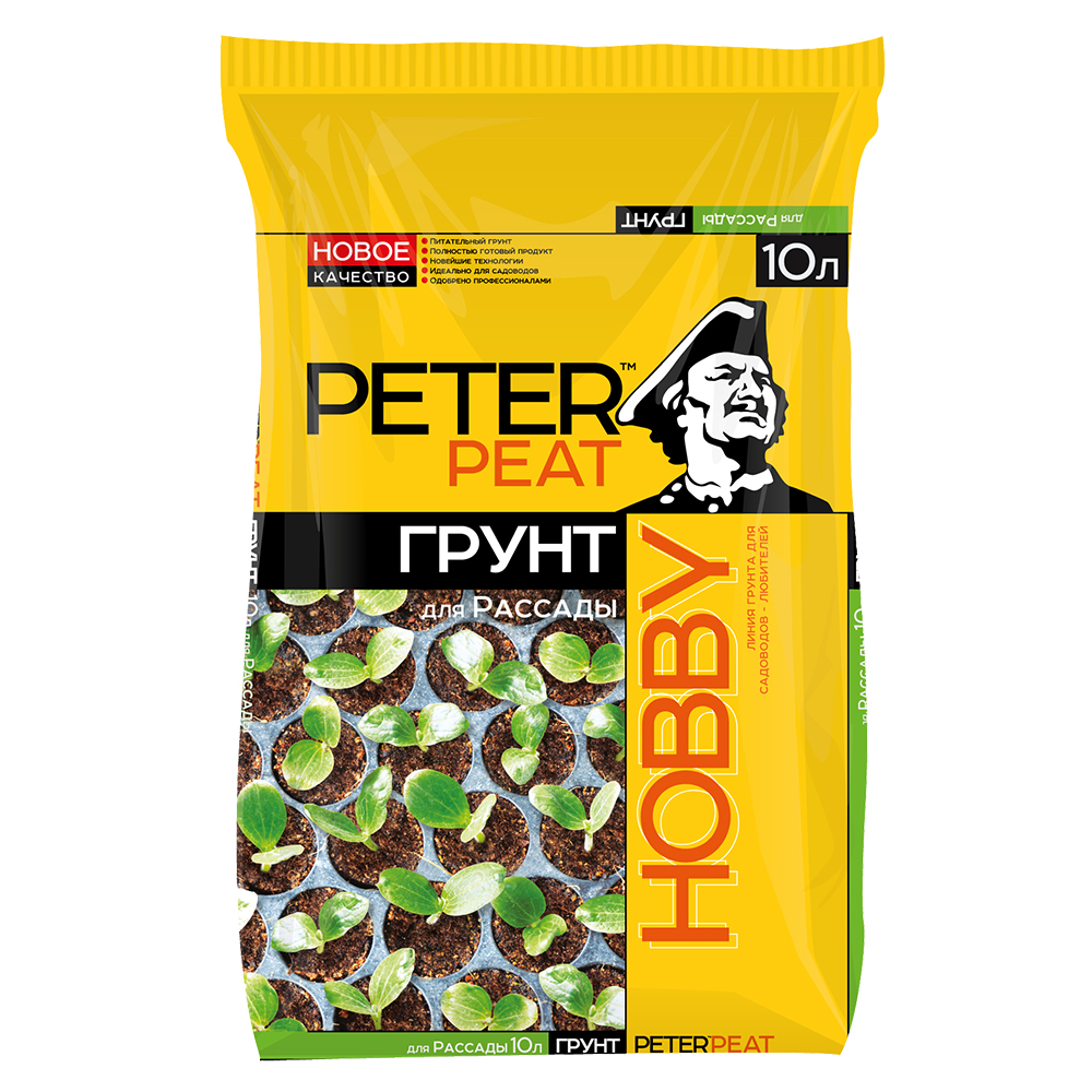 Грунт для рассады (линия Хобби) 10 л - питательный торфяной грунт для выращивания рассады всех видов овощных и цветочных культур. Не требует дополнительного внесения удобрений, обеспечивает рассаду растений необходимым набором элементов питания на весь период развития до пересадки на основное место. Повышает всхожесть семян и приживаемость рассады.