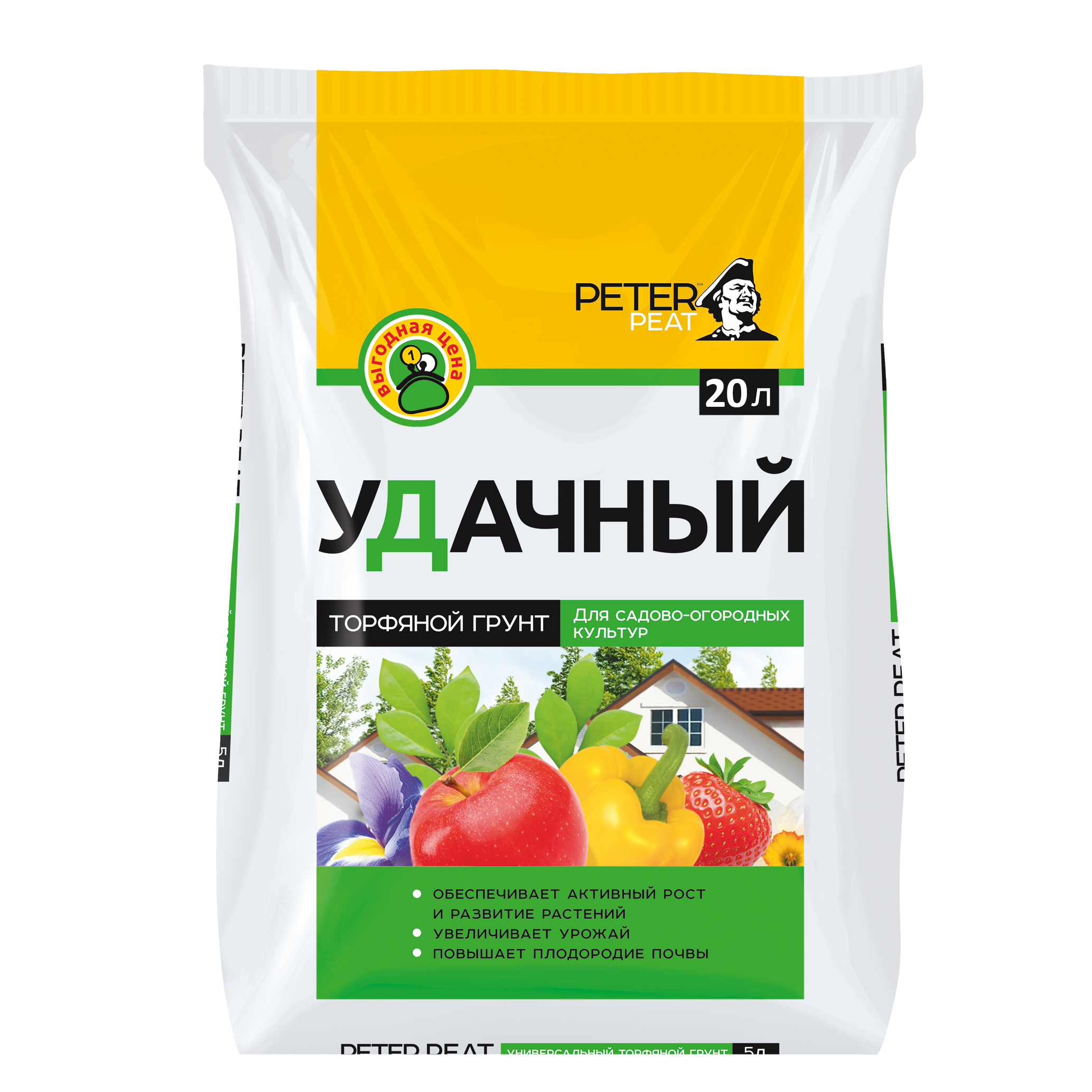 Грунт Удачный 20л - полностью готовый к применению торфяной грунт для выращивания овощных, цветочных, плодово-ягодных культур. Повышает содержание гумуса почвы. Обеспечивает активный рост и развитие растений.