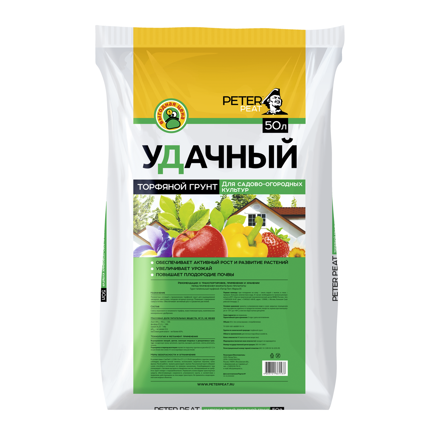 Грунт Удачный 50л - полностью готовый к применению торфяной грунт для выращивания овощных, цветочных, плодово-ягодных культур. Повышает содержание гумуса почвы. Обеспечивает активный рост и развитие растений.