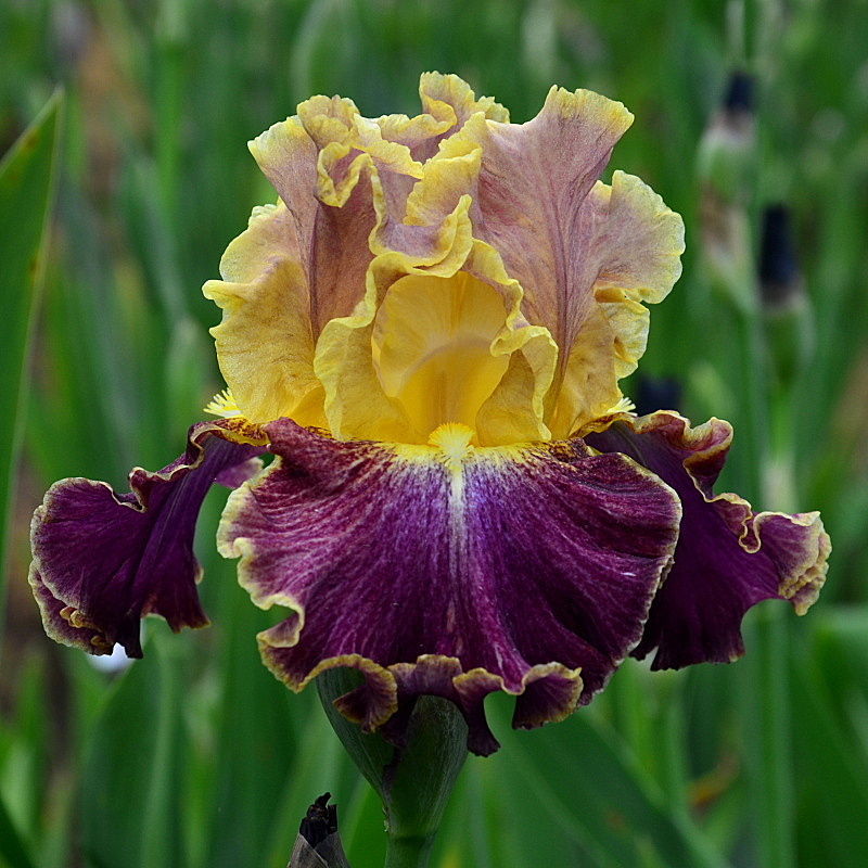 Ирис High Master обладает светло лимонными стандартами с розовым напылением в середине лепестков. Дополнены насыщенным розово-малиновым рисунком люминаты на фолах и ярко желтой бородкой.Супер гофрировка и фантастическая окраска этого сорта сделала его сверх популярным. Высота цветоноса 90 см. Срок цветения поздний. Ароматный.