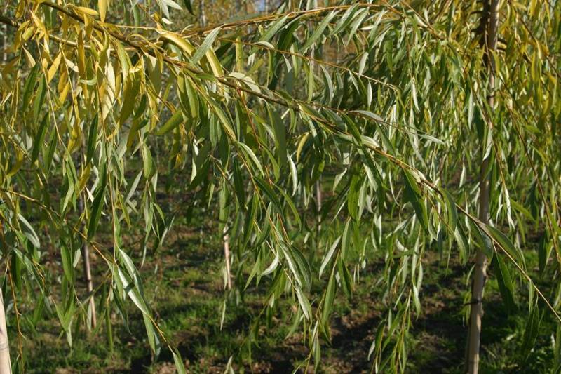 Ива Плакучий Гном - необычный, низкорослый сорт. Невысокое штамбовое дерево (2-3,5 м) со стволом диаметром до 60 мм и красивой сильно плакучей, раскидистой кроной до 2 м в диаметре. Однолетние побеги тонкие, длинные, на нижних ветвях свисающие почти до самой земли, желтовато-бурые. Благодаря форме кроны декоративна и в зимнее время года. Для создания густой кроны может нуждаться в стрижке. Генеративные почки мало отличаются от вегетативных. Листья некрупные, ланцетные, 40-60 мм длиной 6-10 мм шириной, со слабым опушением.