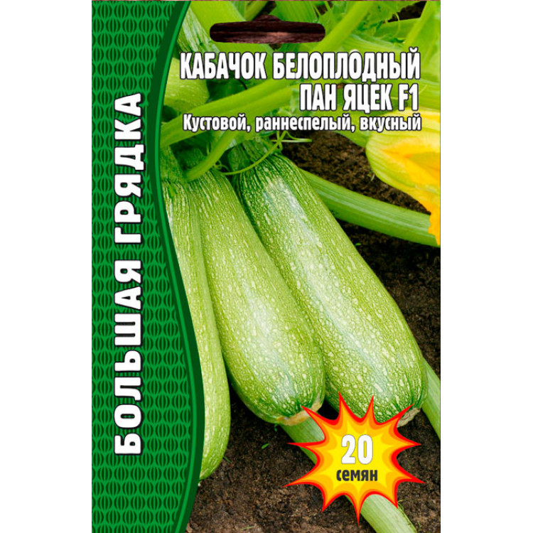 Кабачок белоплодный Пан Яцек F1 (cерия Большая грядка, кол. 20 шт.,) под названием: кустовой, раннеспелый, вкусный