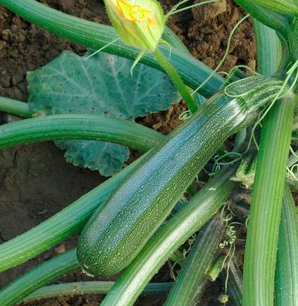Кабачок Zuboda - мощное растение. Листья большие, стебли толстые. Плоды продолговатой формы, темно-зеленые со светлыми крапинками, слаборебристые, гладкие. Мякоть нежная, кремово-белая.