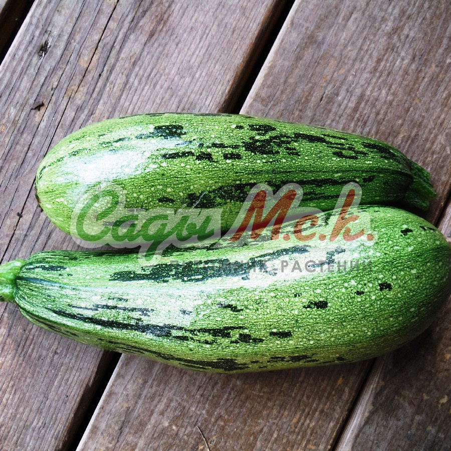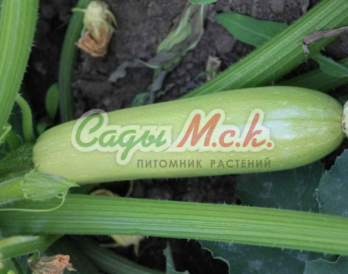Очень красивый цуккини. Высокоурожайный. От массовых всходов до плодоношения - 50 суток. Растение компактное, кустового типа, одновременно на нем созревает 3-4 плода. Плод ровной цилиндрической формы. Кожица светло-зеленая с темно-зелеными продольными полосами, глянцевая, мякоть белая, плотная. Исключительно высокие вкусовые качества. Плоды пригодны для транспортировки и хранения.