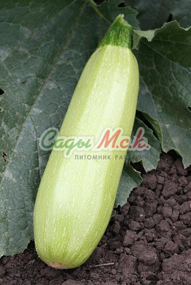 Цуккини - сортотип кабачка, отличающийся от белоплодного неветвящимся стеблем, зеленой, пестрой окраской плодов, более нежным вкусом и способностью к длительному хранению. Молодые завязи (10-15 см) используют вместо огурцов в салатах. Крупные плоды (1 кг и более), собранные до заморозков и ночных холодов, могут храниться в жилой комнате до июня-июля (на свету при температуре не ниже 12 С). Раннеспелый сорт, в плодоношение вступает на 40-45 день. Высевают в середине апреля на рассаду или в конце мая в грунт. Плод цилиндрический, ровный, гладкий или слаборебристый, длинный. Окраска плода зелено-черная. Кора средней толщины. Мякоть светло-бежевая, плотная. Нежный вкус. Урожайность до 15-20 кг/м2.