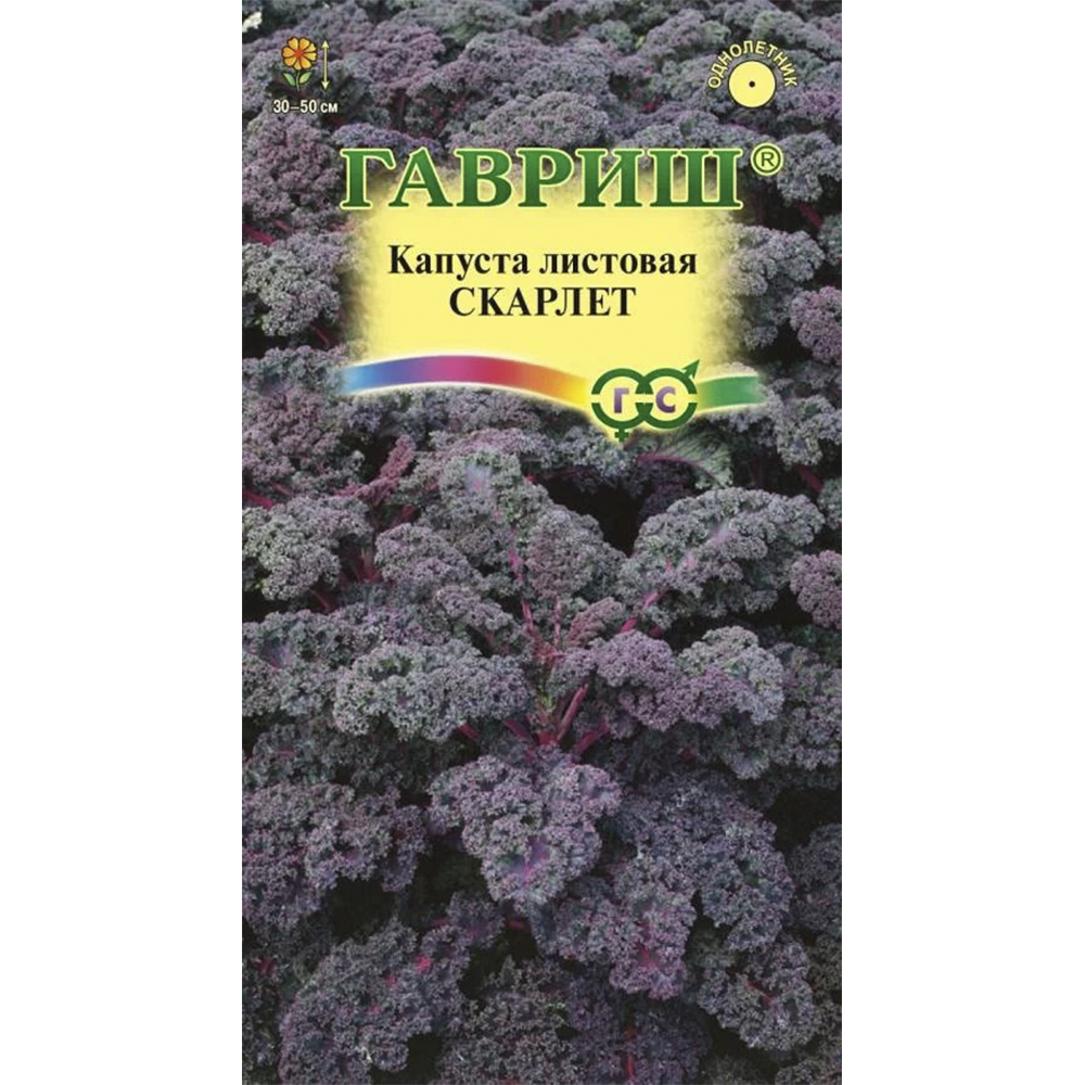 Листовая капуста Скарлет станет ярким украшением цветников до самых заморозков. Растение высотой 30-50 см, с кружевными, пышными листочками пурпурно-фиолетовых тонов. Эффектно сочетается с осенними многолетниками и другими видами декоративной капусты. Подходят для украшения летних, витаминных салатов и закусок. Капуста (кале) не формирует вилков, листья отрастают из середины. В уходе неприхотлива, холодостойка. Посев на рассаду проводят в конце марта-начале апреля. Всходы появляются через 6-9 дней. Высадка рассады в грунт — в конце мая. Пикировка в фазе 1-2 настоящих листьев. Посев в открытый грунт — в мае - начале июня. Хорошо отзывается на регулярный умеренный полив, рыхление и подкормку. Высота капусты очень сильно зависит от питания, особенно азотного. Растение, пересаженное в ноябре в горшок, можно поставить в доме и наслаждаться свежей зеленью долгое время.